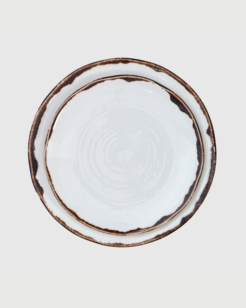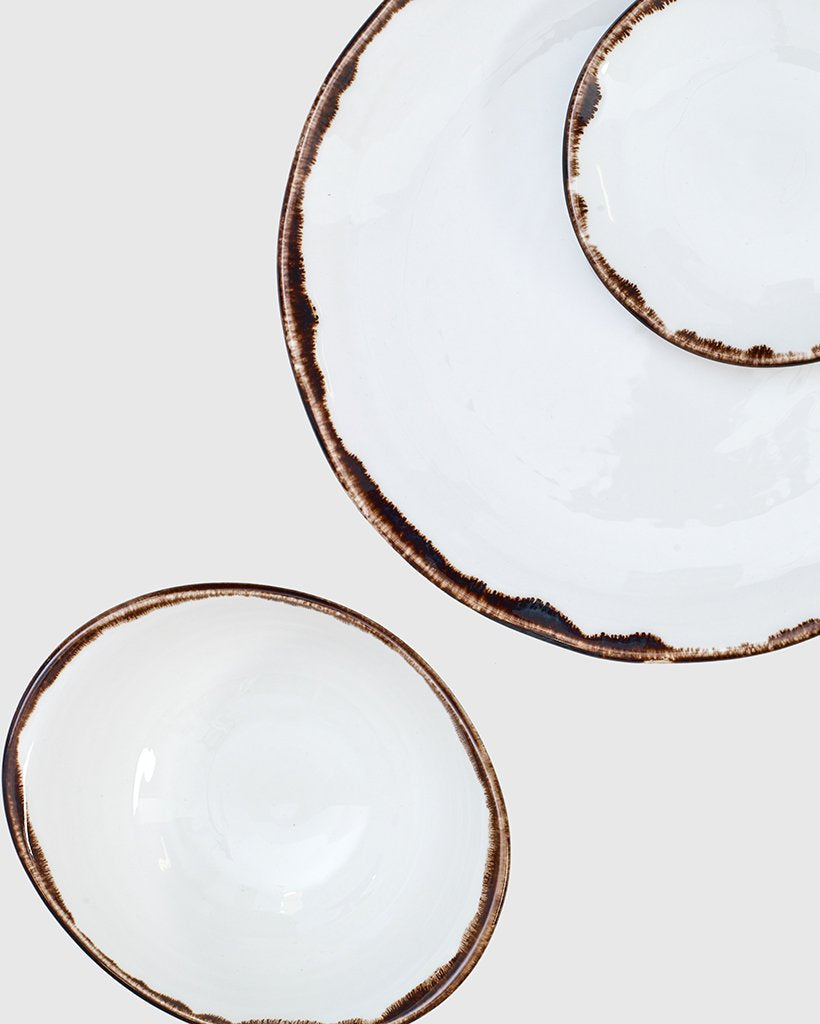 The Organic version of Natural Brown is characterized by its irregular brown hand-painted border, recalling the gastronomic culture of the Cotswolds, where the merchants and financiers of the English capital came every weekend to rest and enjoy the privileged gastronomy of the area. Perfect for an original day to day.